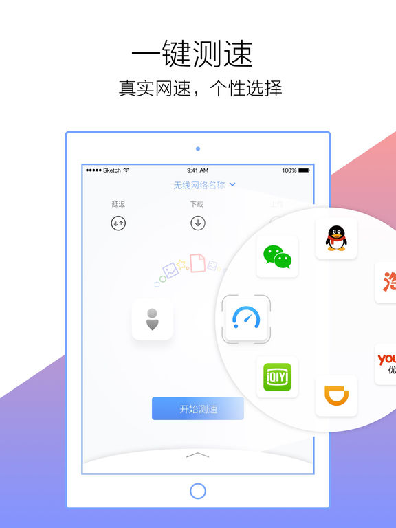 爱测速-为您私人定制的测网速专家,一键解决3G,4G,WIFI,宽带,路由器带宽网络测速。 【贴心的测网速】 快速切换wifi、开关4G,秒测网络带宽拥堵,一键出测速结果,下拉通知栏,添加爱测速widget挂件即可。 【定制的测网速】 专属定制您所关心的热门应用或游戏、直播等网站服务器带宽测速,淘宝,微信,微博等服务器实时网络测速。 【便捷的测网速】 对您当前的带宽网络进行测速,WiFi,2G,3G,4G,宽带都可使用,一键点击,即出结果。 【详细的测网速】 方便您查看比较每次的测网速带宽结果,每次测网速带宽结果均自动保存历史记录,其中包括宽带测速结果。 【测网速小贴示】 get更多提高解决网速新技能,让你测网速获取更多信息。 爱测速在手,测网速不用愁! 官方微信账号:zwwiot