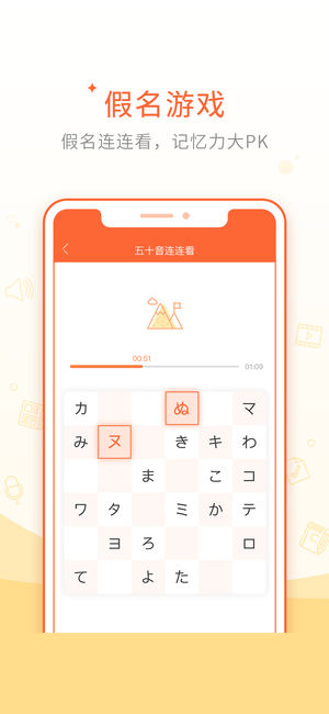 【200万用户,6万+好评】 早道五十音图APP,一款深受日语初学者喜爱的自学神器。好工具事半功倍,来这里轻松学习日本语! 【精彩亮点】 ●学练测一条龙 通过真人发音、录音跟读、手写笔划、联想记忆、题库测验和教学视频等,带你系统化学习日语。 ●闯关式学习 闯关式趣味学假名,把握学习节奏,打牢日语基础。 ●假名小游戏 有趣的假名连连看小游戏,让你边玩边学欲罢不能。 ●知识扩展 实用的日语学习干货段子,打好日语口语、日语听力、日语语法、日语翻译等基础,为日语入门进阶做好衔接。 【主要内容】 ●假名学习 闯关式学日语,真人标准发音,录音跟读假名,亲自手写描红,联想法记假名,更有详细视频教程。 ●…