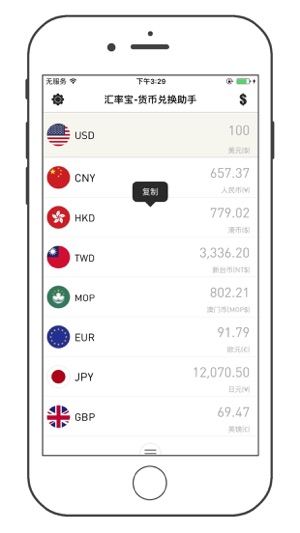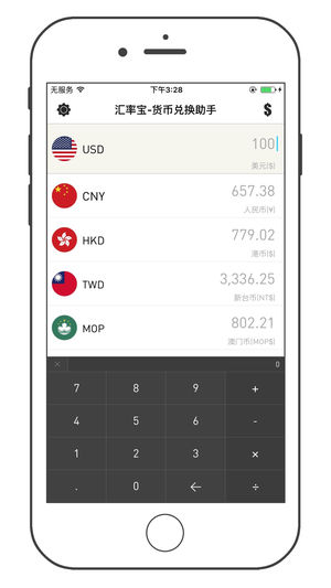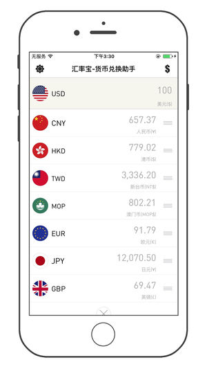 汇率宝-货币兑换助手 是一款实时汇率查询软件,提供 170 多种常用货币及贵金属之间的现汇买入/卖出价、现钞买入/卖出价、银行折算价、等即时信息以及历史汇率的查询,简单极致的操作体验。 [汇率计算器] 支持货币价格的混合运算连运算; [当日走势] 提供汇率当日走势,为做短期货币投资理财的用户提供可视化参考; [历史汇率] 提供汇率历史走势,为做长期货币投资理财的用户提供可视化参考; [汇率实时性] 用户的每一次查询都是获取最新的汇率数据; [节省流量] 汇率数据结果服务器压缩传输,基本不耗流量; [数据可靠] 数据源于雅虎金融; [多功能性] 货币数值复制、货币符号、自动清空、自定义排序添加…