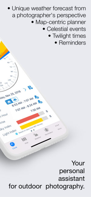 Your personal assistant for outdoor photography. Featured by Apple on „Apps that we love”, from FStooper he got "seal of approval", selected by NoFilmSchool.com as "Coolest Filmmaking Gadget of 2016". GoldenHour.One helps you to find the best time, place and weather for your outdoor pictures. Gold…