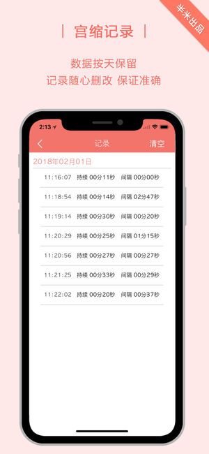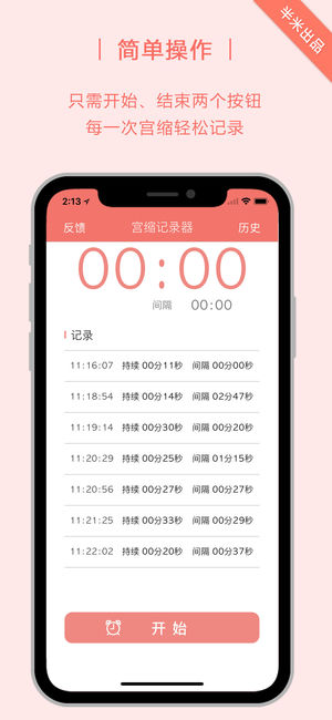 半米出品 宫缩记录器 为准妈妈们提供准确的宫缩时长、间隔记录功能,操作简便。可对单条数据进行删改,保证数据的有效性,同时将妈妈宫缩情况按日期记录下来。 宫缩是临产的一个重要特征,简而言之,就是有规则的子宫收缩即宫缩。宫缩开始是不规则的,强度较弱,逐渐变得有规律,强度越来越强,持续时间延长,间隔时间缩短。监测宫缩的规律性可以判断什么时候去医院待产。 祝愿各位妈妈在我们的陪伴下顺利生产~