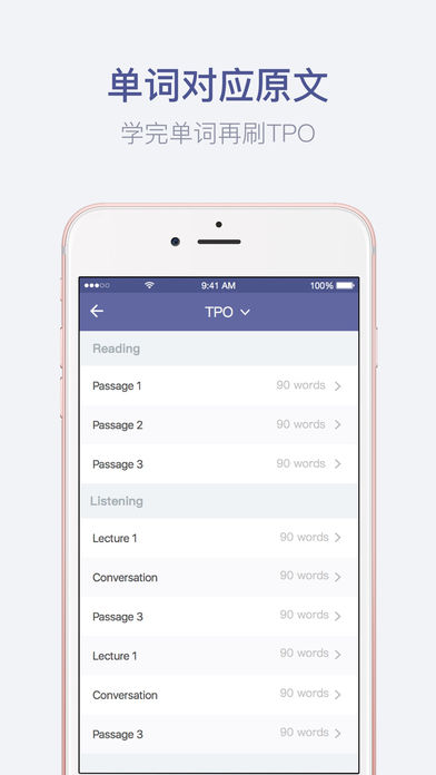 《托福单词》是由小站教育出品的专门针对托福的单词App,专注研究记忆算法,专家从真题和TPO中选取考试高频词汇,按学科分类并结合记忆曲线,充分利用碎片时间,短期高效提高你的词汇量。让你备战托福更高效! 如果你是托福考生,词汇量不够、各种记不住,那么在背单词这道坎上从此不用迷茫在各类单词App或各种厚厚的单词书,亦或是学习资料间了,再也不用从A开始了。因为,有我们问题都解决了~~(此处应有掌声) 【托福考试专用APP】 从词库的选取(TPO和真题中的高频词汇)到功能的设置(TPO核心单词集合学科分类词汇)根据托福考试特点量身定制。 【紧密结合TPO,吃透TPO核心词汇】 将TPO的核心词汇高亮,结合文章更易学习。学完单词再刷TPO,感觉自己棒棒哒! 【天文地理历史生物,学科词汇不用怕!】 托福中经常考察的学科词汇汇总,独家编写词汇具体语境,一口气熟悉学科单词。 【单词电台随声听 】 精选最受考生欢迎的托福单词书,地铁公交单词学习随时随地~ 【科学的记忆复习方法,让你真正记住单词】 只有学习没有复习的背单词都是耍流氓!我们结合艾宾浩斯记忆曲线和Supermemo的记忆法,让每个学到的单词变成真正掌握的单词(With spaced repetition, you can forget about forgetting-Supermemo)。 除此之外,在小站托福收藏的生词也能加入学习计划中!如果你是正在备考托福,或者准备考托福,加入我们吧~使用的同时让我们把这款为托福而生的App做的更好! QQ反馈交流群:298777998