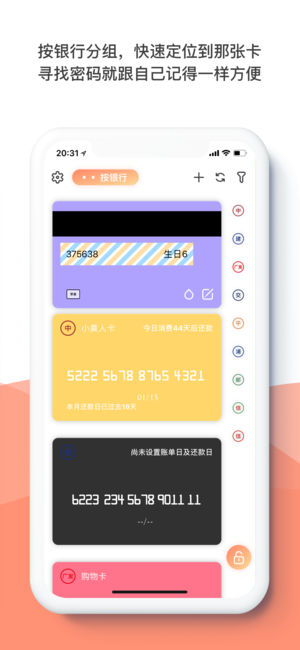 本宝宝办了许多张信用卡,薅银行的毛当然要刷当天免息期最长的那张; 可知道要刷哪张卡了,却想不起来它是绑定了微信还是支付宝,总不能所有卡都开通所有的快捷支付吧,太不安全; 要知道本宝宝是个非常没有安全感的人,平时宁愿忘了密码,也不愿意把自己的银行卡密码交给那些会上传到他们服务器的管理App,万一哪天他们服务器被黑客入侵了…想想都觉得可怕,还是放在自己这最放心。 找了一圈没发现这样的App,只好自己做一个咯,当当当,“卡蜜”(原刷卡助手)诞生啦!它虽然只有三个功能,但是却完(漂)美(亮)地解决了上面的几个问题: • 立刻知道今天刷哪张卡可以有最长免息期! • 立刻知道哪些卡绑定了哪些快捷支…