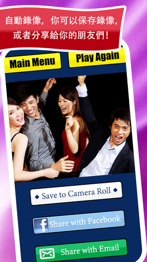 看过幸运52么?看过年代秀么?想亲自玩几把么?使用这个软件吧亲,绝对的聚会利器,风靡全球的party游戏,随时随地都能和你的朋友们或家人一起玩游戏! 一对夫妻,猜食品名称,老婆比划老公猜。屏幕上跳出“馒头“一词。 老婆描述:“圆圆的,白白的,能吃的!” 老公:“…………” 老婆继续描述:“就是白白的,软软的,你昨晚上还吃来着!” 老公看来是急坏了,脱口而出:“咪咪!” 是不是很有意思,这样的经典对白,你也可以有哦。 玩法: 游戏玩法简单却非常有意思。 1. 选择一个卡片并且点"play"; 2. 将手机或者ipad放到自己的额头上方或者胸前也可以,保证自己看不到卡片内容…