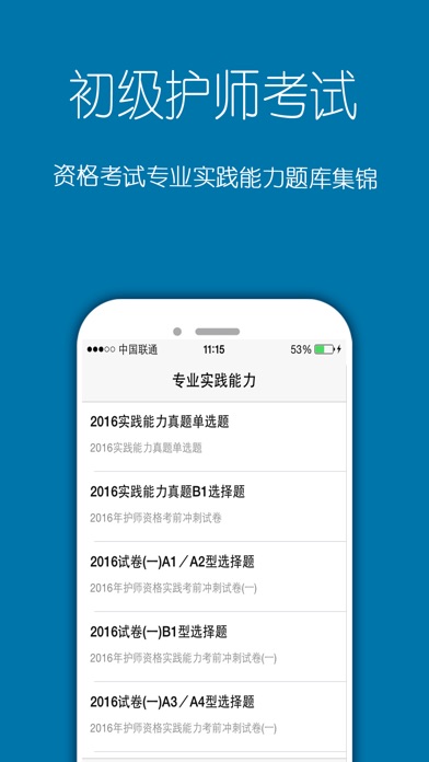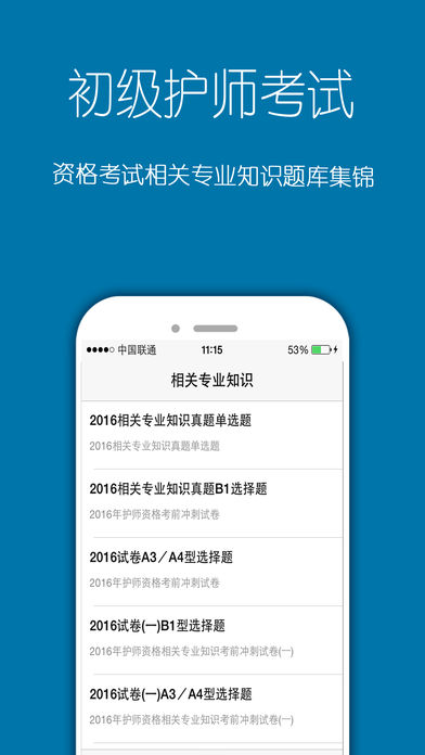 软件精心准备了2013~2016年初级护师资格考试的历年真题,专项训练,模拟真题,以及章节练习。该软件覆盖最新的考试考点考纲,把握考试重点,预测试卷紧跟命题趋势,帮助考生顺利考试。 【历年真题】:覆盖最全的历年真题 【模拟真题】:预测试卷紧跟命题趋势,涵盖新考点 【章节练习】:护师基础知识,专业知识,相关专业知识,专业实践能力全部靠垫全部覆盖,让您的复习更加全面、仔细。 【离线使用】--无广告,无需网络,方便便捷。 《基础知识》 2016年护师资格考前冲刺试卷 2016基础知识真题 2016年护师资格基础知识考前冲刺试卷(一) 2016年护师资格基础考前冲刺试卷(二) 2016年护师资格基础知识考前冲刺试卷(三) 2016年护师资格基础考前冲刺试卷(四) 2016年护师资格基础考前冲刺试卷(五) 2016年护师资格基础考前冲刺试卷(六) 2016年护师资格基础考前冲刺试卷(七) 2014年护师资格《基础知识》考前冲刺试卷(5) 2014年护师资格《基础知识》考前冲刺试卷(4) 2014年护师资格《基础知识》考前冲刺试卷(3) 2014年护师资格《基础知识》考前冲刺试卷(2) 2014年护师资格《基础知识》考前冲刺试卷(1) 2013年护师资格《基础知识》全真模拟试题(2) 2013年护师资格《基础知识》全真模拟试题(4) 2013年护师资格《基础知识》全真模拟试题(5) 2013年护师资格《基础知识》全真模拟试题(3) 2013年护师资格《基础知识》全真模拟试题(1) 《专业知识》 2016专业知识真题 2016年护师资格专业知识考前冲刺试卷(一) 2016年护师资格专业考前冲刺试卷(二) 2016年护师资格专业考前冲刺试卷(三) 2016年护师资格专业考前冲刺试卷(四) 2016年护师资格专业知识考前冲刺试卷(五) 2016年护师资格专业考前冲刺试卷(六) 2016年护师资格专业考前冲刺试卷(七) 2014年护师资格《专业知识》考前冲刺试卷(5)(最新卷) 2014年护师资格《专业知识》考前冲刺试卷(4)(最新卷) 2014年护师资格《专业知识》考前冲刺试卷(3)(最新卷) 2014年护师资格《专业知识》考前冲刺试卷(2)(最新卷) 2014年护师资格《专业知识》考前冲刺试卷(1)(最新卷) 2013年护师资格《专业知识》全真模拟试题(1) 2013年护师资格《专业知识》全真模拟试题(2) 《相关专业知识》 2016相关专业知识真题 2016年护师资格相关专业知识考前冲刺试卷(一) 2016年护师资格专业考前冲刺试卷(二) 2016年护师资格专业考前冲刺试卷(三) 2016年护师资格专业考前冲刺试卷(四) 2016年护师资格相关专业知识考前冲刺试卷(五) 2016年护师资格专业考前冲刺试卷(六) 2016年护师资格专业考前冲刺试卷(七) 2016年护师资格相关专业知识考前冲刺试卷(八) 2014年护师资格《相关专业知识》考前冲刺试卷(5)(最新卷) 2014年护师资格《相关专业知识》考前冲刺试卷(4)(最新卷) 2014年护师资格《相关专业知识》考前冲刺试卷(3)(最新卷) 2014年护师资格《相关专业知识》考前冲刺试卷(2)(最新卷) 2014年护师资格《相关专业知识》考前冲刺试卷(1)(最新卷) 2013年护师资格《相关专业知识》全真模拟试题(1) 2013年护师资格《相关专业知识》全真模拟试题(2) 2013年护师资格《相关专业知识》全真模拟试题(3) 2013年护师资格《相关专业知识》全真模拟试题(4) 2013年护师资格《相关专业知识》全真模拟试题(5) 《专业实践能力》 2016实践能力真题 2016年护师资格实践能力考前冲刺试卷(一) 2016年护师资格实践考前冲刺试卷(二) 2016年护师资格实践能力考前冲刺试卷(三) 2016年护师资格实践考前冲刺试卷(四) 2016年护师资格实践考前冲刺试卷(五) 2016年护师资格实践考前冲刺试卷(六) 2016年护师资格实践考前冲刺试卷(七) 2016年护师资格实践考前冲刺试卷(八) 2016年护师资格实践能力考前冲刺试卷(九) 2016年护师资格实践能力考前冲刺试卷(九) 2013年护师资格《专业实践能力》考前冲刺试卷(5)(最新卷) 2013年护师资格《专业实践能力》考前冲刺试卷(4)(最新卷) 2013年护师资格《专业实践能力》考前冲刺试卷(3)(最新卷) 2013年护师资格《专业实践能力》考前冲刺试卷(2)(最新卷) 2013年护师资格《专业实践能力》考前冲刺试卷(1)(最新卷) 2013年护师资格《专业实践能力》全真模拟试题(1) 2013年护师资格《专业实践能力》全真模拟试题(2) 2013年护师资格《专业实践能力》全真模拟试题(3) 2013年护师资格《专业实践能力》全真模拟试题(4)