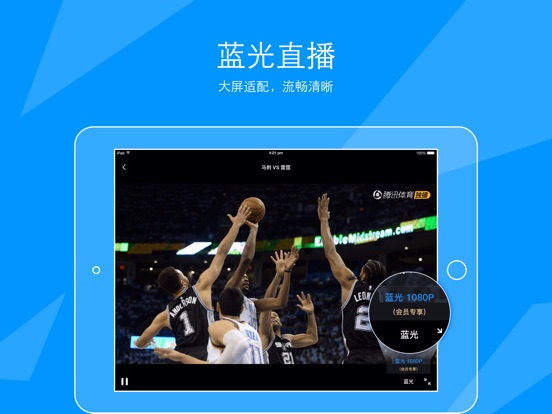 史上最好用的体育iPad产品来了! 腾讯体育HD,掌握最全面的赛事直播资源,提供最方便的赛程查询服务,还有最详细最实时的数据排行,打造看比赛直播与体育视频最好用的体育类iPad客户端。 * NBA全网独家直播及完整回放与视频集锦,1080p蓝光清晰度完美呈现!更有英文原音解说还原比赛现场氛围,给你最完美的观赛体验! * 中超、英超、欧冠、亚冠、CBA、西甲、意甲、德甲、法甲、NFL、F1、澳网、电子竞技、欧洲杯、美洲杯、奥运……全方位比赛类型,24小时经典比赛随时随地让你high起来~ *最完善快捷的图文直播,最迅速准确的实时比分、技术统计、赛季排名,还有实时观赛提醒,精彩赛事绝不错过! * 最优质的金牌解说只在腾讯体育:柯凡、王猛、苏群、马健、刘家超、孟晓琦、杨毅、李楠、李可……更有小姨妈等美女主播搭配精彩解说陪你看球! 除此之外,我们还有世界顶级的转播技术和团队,英文原音、多角度、VR虚拟技术,轻松满足球迷各种需求,只要你网速足够,我们绝对不卡! 别犹豫了,加入我们,腾讯体育,你值得拥有! 让我们一起High翻足篮,放肆吼出来! 更多精彩内容等待你的发现!