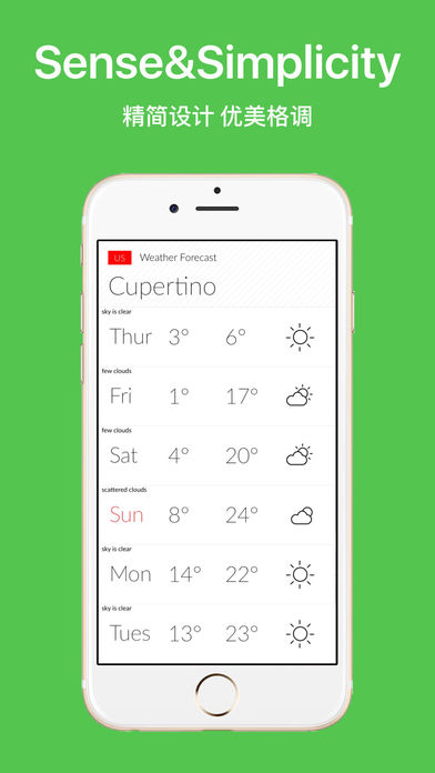 最畅销的天气App,显示优惠中仅3元,活动结束恢复原价18元! 1.来自北欧的极简设计,一切都以最优美的方式呈现! 2.按照最高标准,超前的审美格调设计!