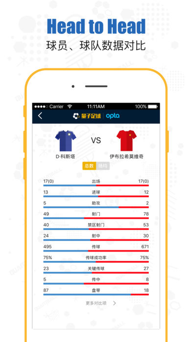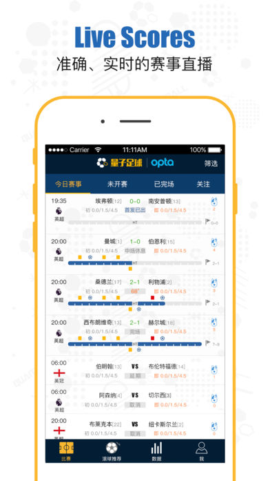 量子足球是专注于足球赛事数据实时直播的应用 数据均来自专业的足球比赛数据提供商 OPTA ,量子足球通过对原始数据的深度解析和处理,为用户提供有价值的足球数据信息。 大数据多维度分析的赛前报告,为用户提供预期进球、大小球走势等重要信息。 深度处理的足球比赛实时数据,第一时间通过数据向用户反映比赛内容。同时,量子足球多维度的数据模型既让用户得到准确的比赛看点,还能对比赛走势进行预测。 独特的球员评分体系,涵盖世预赛、中超、英超、意甲、德甲、西甲等众多足球俱乐部及球员,让你对球员和球队的能力一目了然。 详细的足球联赛数据,让你更了解你关心的球队和球员。 量子足球,可能是最geek的足球数据APP 官方网址:http://www.qfootball.cn/ 官方微博:量子足球APP 微信:量子足球APP(liangzizuqiu)