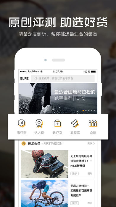 运动是一种生活方式! 速尔体育是一个专注于运动的生活方式推荐引擎。速尔体育从和运动息息相关的运动装备开始,为广大用户提供实用、适用、好用的运动生活方式解决方案。运动装备评测、TOP5装备排名、争议装备拆解、运动康复诊疗室、、运动干货知识……如果你也喜欢运动,拥有速尔体育,可以让你get到关于运动和运动装备的方方面面。 【运动需要穿什么?】 运动是自由的,你可以学习大神打赤脚或穿着拖鞋跑步,但我们还是强烈建议你至少有一双舒适的跑鞋,这样你的运动将会更将健康舒适。 当然,还有更多能让你舒服更健康的装备,速尔体育家的装备库搜罗了各式各样的运动装备,跑鞋、服装、配件、防护装备……应有尽有。 【什么装备适合我?】 高弓足、正常足、扁平足;5km、10km、马拉松、骑行、篮球或者是一场酣畅淋漓的足球;每个用户的需求都是不一样的。 没关系,速尔小编教你怎么挑装备,帮你一一试装备。最新装备原创评测,特约运动达人实测,通过原创视频、100%实拍图片,让你方便快捷挑选到适合你的装备。 【上哪去挑好装备?】 淘宝天猫京东,美亚日亚德亚,纷繁复杂看花眼,费了精力费时间。 不要紧,速尔买手神通广大,山南海北精选最新最棒的运动装备,火爆款、折扣款、限量款,款款动心,只需轻点即可愉快到手。 【哪儿买的装备真靠谱?】 高仿假货打不尽,马云叔叔也摊手。 速尔体育APP帮你识货,严控装备货源,厂商合作直供,100%正品保障,不靠谱的装备进不来,有必要的好货才上架,上速尔你可安心购物。 微信公众号:速尔体育 微博:@速尔体育 优酷:速尔体育APP 客服电话:40015-42195,或在速尔体育APP内与客服留言 联系邮箱:info@surex.cn