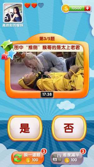 **史上最没节操的问答神作!挑战你的下限!** 1. 超过20000道无节操题目每日更新~让你一玩就脸红! 2. 穿越时空、地域、二次元,挑战凤姐、鸟叔、柯南、李小龙!数百个特色关卡看你能否一站到底! 3. 玩家真人在线PK、金币下注排名,每周送出神秘大奖,快来抢! 4. 首个支持和微信好友在线互动的手机游戏!马上向微信好友发起挑战,还有免费金币拿! 5. 各种奇葩专题题库每周上线,答题还能抽刮刮乐,保证你High到爆~