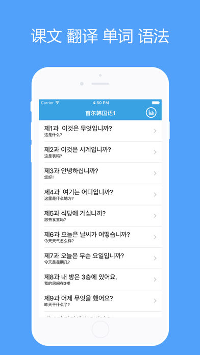 首尔大学韩国语是为在首尔大学语学研究所学习现行韩国语教育课程的不同地区的成人学习者编写的。 现行的首尔大学对外国人的韩国语教育分为4个学期(每学期10周),共计800课时。学习者在结束全部课程后,在听、说、读、写四个方面全面掌握在韩国升学、就业等多种社会生活中所需的基本韩国语口语能力。 首尔韩国语1从易到难地介绍韩国语语法体系和句子结构,选取日常生活中使用韩国语的实际情景编排课文内容,在轻松不枯燥的学习过程中培养零起点学习者日常生活中必备的基础韩语入门沟通能力和韩语口语能力。 【功能特色】 -兼容iPhone/iPad,无广告,无需联网; -支持锁屏控制、后台播放; -支持播放记忆、支持语速调节; -支持循环/单课播放; -内容全面,包含课文、单词、韩语语法知识。