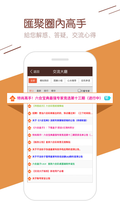 彩库宝典是一款由六合彩库基于香港彩为内容,集六合图库、历史开奖、统计信息、推荐数据于一体的香港彩信息应用。彩库宝典通过大量的数据,以及运用自主研发的分析香港彩方法,率先实现了香港彩各玩法的推荐。应用中的数据统计把特码、正码、波色、生肖等各玩法的历史以图表形式显示出来,用户可以查询到过往任何阶段的数据。彩库宝典具有资源占用低、操作简捷、数据齐全等特点,是目前国内最受欢迎的全能香港彩信息应用之一。 【主要功能】 1.视频开奖:开奖视频直播,真实的开奖视觉,玩彩更刺激; 2.六合图库:高清、丰富的图库资源,还提供下载图纸功能; 3.统计资讯:历史数据覆盖40年,给您提炼最有价值的数据信息; 4.查询助手:生肖、号码、波色、五行.....所有的走势一目了然; 5.交流大厅:汇聚圈内高手,给您解惑、答疑,交流心得; 6.工具宝箱:玄机锦囊、生肖卡牌.....快速定位您想要的吉祥号码/生肖; 7.幽默猜测:趣味视频、幽默图片人人参与竞猜,是您必备的练手神器。 【精品图纸】 香港正版孩童图 苹果日报 香港正挂挂牌 澳门老鼠报 东方心经 管家婆 跑狗图 特新报 诸葛神算 【联系方式】 官方QQ:800185990