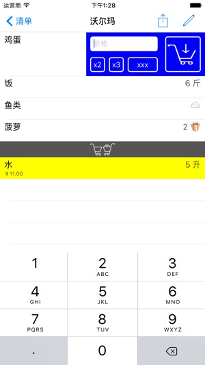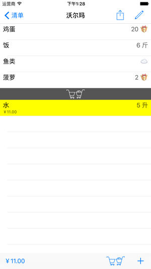 去商店时,不要了再想还需要买什么。事先编制购物单,并只是将购物篮里的商品在购物单上做记号。知道您购物篮的目前金额。 您所有清单的数量取决于您的要求。如愿,您可将各清单与不同的地理位置绑定。 这样,您将软件打开时,所绑定的清单就会迅速打开。 - 商品的价格与数量的迅速输入。 - 可将清单通过电子邮箱或短信与其他人共同使用。. - 购物单与地理定位绑定后,可在打开软件时自动地打开绑定的购物单。 - 将为购买的物品可转移到另外一个清单中。 - 据清单所编制的模板让将购物单编制很快。 - 可作购物历史。 - 可将预定义的商品删除并重复。