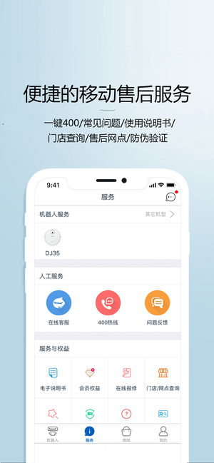 科沃斯机器人App是连接科沃斯智能机器人产品的手机端应用,支持科沃斯旗下扫地机器人、空气净化机器人及管家机器人品类下指定的机器人产品。您通过App可以完成对机器人的功能操控,并且查看更多传统遥控器无法展示的数据信息。 *强大的远程操控能力 随时掌握清扫进程:一眼便知清扫路径 远程预约实时开启清扫:在办公室也能进行家中清扫 查看耗材计时等使用状态:边刷、滚刷使用情况一目了然 实时设置虚拟墙(Smart NaviTM部分机型适用):你划的禁区地宝绝不会去 轻松实现划区清扫(Smart NaviTM部分机型适用):想扫哪里扫哪里 掌上调节拖地水量(具有拖地功能部分机型适用):粗糙地面调大,光滑地面…