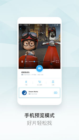 进入优酷VR, 你可以感受上天遁地,从数万米高空瞬间坠落的刺激; 你可以跨越亘古时间长流,数亿年宇宙洪荒之变尽在眼前; 你可以瞬间穿越到黄金海岸,与泳装美女一同嬉戏玩耍; 你可以化身游戏中的战士,在虚无世界中冲锋陷阵; 你可以出现在泰山与金刚的身边,穿行于最经典的电影画面; 说不定,还可以空降《火星情报局》和《极限挑战》现场,与特工们一起提案,与男人帮一起冒险…… 优酷VR是由优酷出品的VR视频内容平台。 在这里,你既可以裸眼观看360°全景视频,也可以通过VR设备进行身临其境的体验。 【精准的个性化推荐】 通过最新个性化推荐技术,只需观看热门推荐中几个您感兴趣的视频内容,智能推荐算法便会…