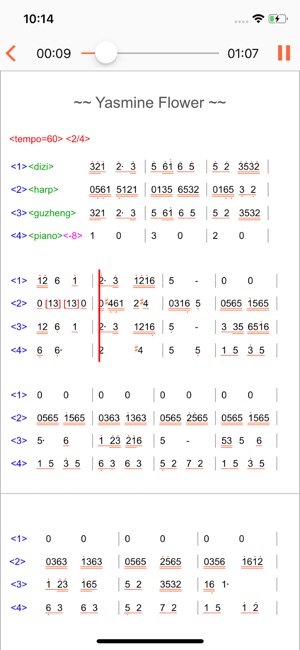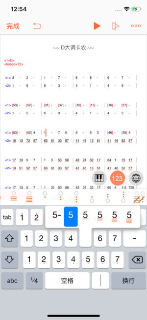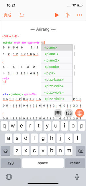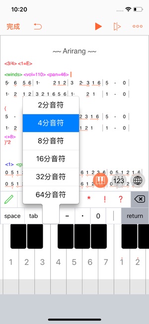 文本音乐是一款基于简谱记谱法的快速记谱App,其所有乐谱元素均由文本构成。软件内置90种乐器音色,包括多种民族乐器如古筝、琵琶、二胡、笛子、阮、扬琴、编钟等。并支持多达32个声部同时播放。 主要功能: ‣适合快速记谱的音符键盘. ‣内建90种乐器音色 ‣导出 MIDI, PNG, PDF, TXT, Audio 文件 ‣支持多声部音乐、和弦、琶音和弦、延音(连音)、和弦连音、三连音、多连音、滑音、震音、颤音、倚音、滑奏(刮奏)、花指(古筝技法)、摇指(古筝技法,同震音)、循环、跳转记号... ‣音乐标签 ‣可变曲速、可变音量、可变音色 ‣字体设置 ‣颜色设置 ‣音符自动对齐(输入小节线时…