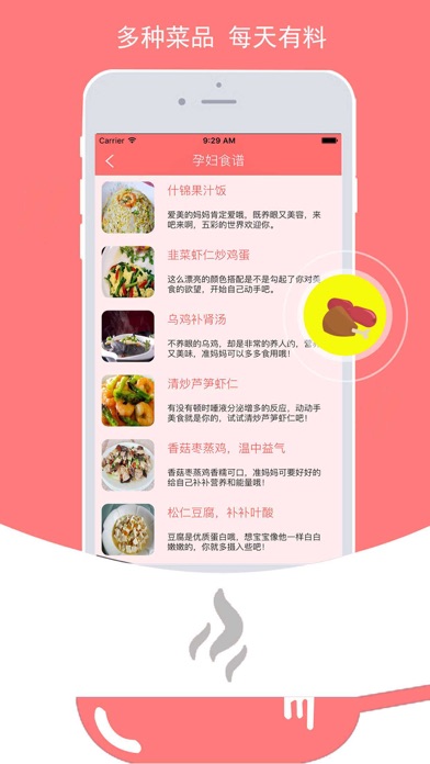 医生推荐:营养搭配合理,非常好吃! 为处在不同孕期时段的宝妈提供每日菜品,为您提供所需的营养,为腹中的宝宝健康成长助力!
