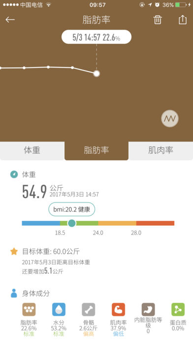 软件介绍: 一款可以和电子秤进行数据传输的应用,是健康生活的好帮手。用户可随时随地、轻松自如的进行个人健康管理。 主要功能: 1)软件通过蓝牙和电子秤进行数据传输; 2)自动传输、保存人体健康数据; 3)自动判断人体健康数据是否标准; 4)自动生成人体健康数据曲线图; 5) 支持云数据存储 6) 支持存储数据至苹果健康 7)支持运动轨迹