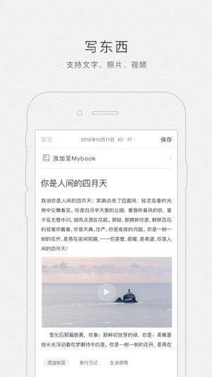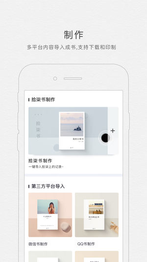 拾柒,图文记录,一键成册 【拾柒】 一款提供 " 多平台记录,一键成册,精美印制 "的文化生活服务工具,你的私人文字管家! 【记录】 生活记录空间,私密,安全,支持文字,图片,视频多种格式; 多人一起写,邀请好友一起书写回忆。 【成册】 第三方导入成册,把过往的朋友圈、微博、博客一键导入,制成电子书册; 拾柒书,您在拾柒的记录可一键制作成电子书册; 【印制】 所有在拾柒制作的电子书册,都支持直接印制成精美实物书,永久珍藏记忆!