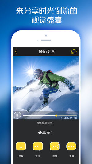 这个应用是一个非常有用的视频编辑工具。它可以帮助你将视频倒序播放,创造出时间倒转的视频。同时它还支持倒放后对视频加速或者减速播放。可以用它来制造出令人惊叹的创意效果。 特点: 1. 倒放视频 2. 支持对倒放后的视频进行加速或减速播放 3. 简单易用 4. 支持通过邮件,短信分享 我们还提供其他的一些视频编辑工具,让您的iphone成为您的移动视频编辑站