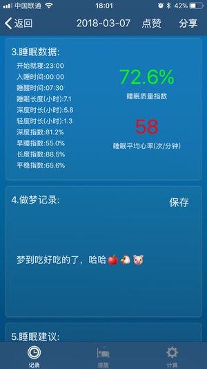 使用Apple Watch精准监测睡眠,自动监控,绘制睡眠曲线图,帮您记录每一次睡眠精确数据。详细分析,深浅睡眠,曲线图表给出详细状态。 日历模式,可以直接看出睡眠起止时间、质量等睡眠参数。 支持做梦记录,帮您记录每一天的美梦! 采用智能自动适应校准算法,适合大部分人的个性特征。 不使用手机麦克风,没有后台运行,不增加电量消耗。远离手机,远离辐射。 将在床数据和入睡数据数据写入“健康”应用,在“健康”应用可查看睡眠统计信息和统计图表。 支持小组件和桌面3DTouch 特别提醒,一定要看: 1不戴手表容易使本应用崩溃,数据不准 2不要打开手机Watch应用中“体能训练”的“节能模式”,因为节…