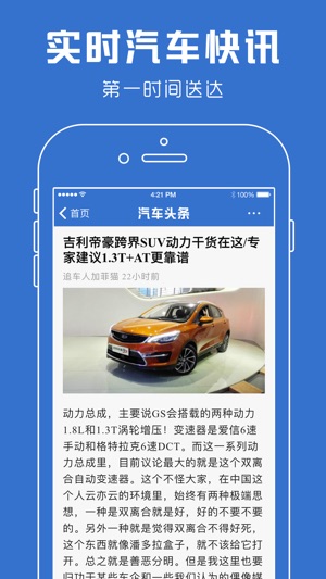 汽车头条是一款专为汽车爱好者设计的手机软件。 我们致力于打造专业、权威、为用户着想的汽车资讯浏览器。 凭借技术优势,每日精选了各大汽车网站的头条新闻内容。 全面覆盖汽车领域,每日更新上万条最新数据及资讯。 最快的行情! 最全面的资讯! 最齐全的功能! 最专业的数据!