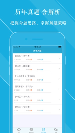 本软件为政法干警招录考试题库软件(含本科类、专科类、本硕类),《文化综合》《民法学》《申论》、《行测》等科目,结合最新考试大纲及最新考试动态、认真研究历年考试真题、综合分析最新考试信息、把握近几年考试的发展趋势,针对考试的不同题型、考点,开发了考试标准题库。题库均配有详尽的答案及解题思路。 【功能介绍】 1、2018最新押题试卷,带答案详解,并可手动将易错或未牢固掌握的题加入复习库和错题库,以便反复练习,可进行顺序测试和模拟测试。 2、历史真题:精选最新历史真题题目及解析。 3、错题库:可自动加练习过程中错题加入收藏,以便反复练习。 4、收藏夹:可在练习过程中自行收录题目到收藏夹,形成…