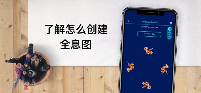 关掉灯并打开Hologramium 3D应用程序。这似乎是不可能的,但现在你可以创造一个彩色全息图而无需特殊的高科技设备。不是在实验室里,而是在你的房间里。 大量的全息图 陆地和海洋的半透明生物,爱的象征,不同的闪亮的光… 详细的教程 一步一步的指示---你需要什么工具和材料,以及如何制作一个金字塔 难以置信的小夜灯 不管你多大了,所有的噩梦都会消失,被这个神奇的光吓跑了 个性化的定时器 设置关闭的时间,不要担心浪费电池的电量