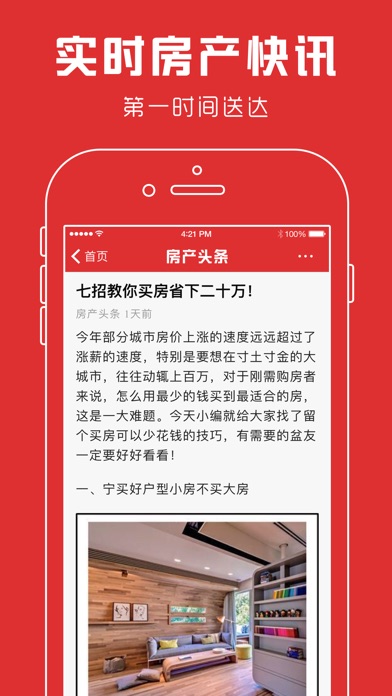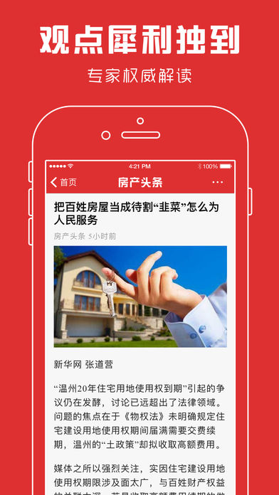 房产头条是一款专为关注房地产行业人群打造的手机软件。 我们致力于打造专业、权威、为用户着想的房产资讯浏览器。 凭借技术优势,每日精选了各大房产网站的头条新闻内容。 全面覆盖房产领域,每日更新上万条最新数据及资讯。 最快的行情! 最全面的资讯! 最齐全的功能! 最专业的数据!
