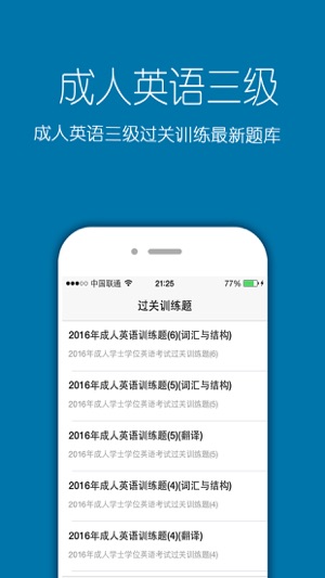 应用介绍: 针对成人英语三级考试所制定的专业辅导软件,为英语三级考试学员提供专业的预测题、模拟题,以及训练题的专业题库。 真题解析——历年真题解析,押题好伴侣 离线使用--无广告,无需网络,方便便捷。 2016年成人学位英语考试模拟试题及答案一 2016年成人学位英语考试模拟试题及答案二 2016年成人学位英语考试模拟试题及答案三 2016年成人学位英语考试模拟试题及答案四 2016年成人学位英语考试模拟试题及答案五 2016年成人学位英语考试模拟试题及答案六 2016年成人学位英语考试模拟试题及答案七 2016年成人学位英语考试模拟试题及答案八 2016年成人学位英语考试模拟试题…