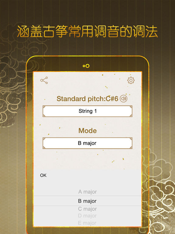 古筝调音器是由琴友设计,琴友必备的调音工具。 -通过手机麦克风,自动测音。 -独特算法,自动调音修正。 -除了D调以外,适配所有古筝调式。 -简单明了,初学者凭直觉就可以使用。