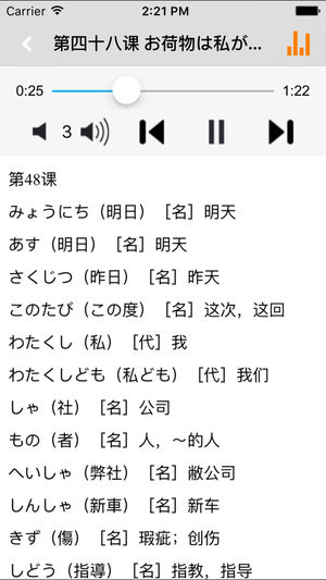 本应用为《新版中日交流标准日本语》单词学习软件。它包括初级上下册共48课全部单词内容,全程真人高音质发音。 使用本应用,配合教材,各个阶段的学习者方便快捷的学习和查阅教材的单词内容,快速高效地记忆单词。 ■完全配合教材单词内容 ■所有词条以课为单位按序编写 ■每个单词都配有真人高质量发音 ■全文朗读功能,锁屏后依然可以练习背诵单词 ■应用可快速返回到最后学习处,不用担心上次学习到哪里 《新版中日交流标准日本语》初级上下册单词,词汇量总数约为2900词,上册约1400词,下册约1550词。音频概括所有课文生词表中出现的单词发音。 为了帮助广大日语学习者能够快速、准确地掌握《新版中日…