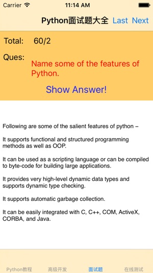 python开发者参考学习的给力教程《Python大全》。 内容涵盖了python的教程、开发、面试题、测试题目,包括了: 1.Python教程 2.Python快速入门 3.Python概述 4.Python环境安装 5.Python基本语法 6.Python变量类型 7.Python基本运算符 8.Python决策 9.Python循环 10.Python数字类型 11.Python字符串 12.Python列表 13.Python元组 14.Python字典 15.Python日期时间Date/Time 16.Python函数 17.Python模块 18.Python文件I/O 19.…