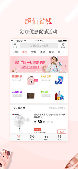 咖购专注于网购省钱,为用户提供品牌独家限时低价折扣特卖秒杀,汇聚淘宝天猫等一线品牌商为买家提供比1元购更实惠的超嗨购物盛宴,是全国首款限时限量品牌低折扣特卖的最省钱购物应用。 比卷皮更低折扣,比唯品会更高品质,比蘑菇街更实惠,比折800更低价格,比返利更省钱,每天几十场次的一元疯抢嗨爆全场,咖购是你必备的手机购物省钱神器。 咖购省钱方式 【折扣】每天十余场品牌限量秒杀抢购。 【返现】返现高、秒到账、不丢单、实时查单,红包优惠券抵扣后再高额返现。 【红包】现金红包抢不停,只为让你购物省到家; 【优惠券】淘宝天猫京东大额专享优惠券领不完; 【渠道价】卖家专为咖购会员设定独家专享渠道价;