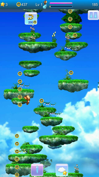 一群被封印在海底龙宫的小动物逃出来了. 他们要进入天宫,修成正果,得到成仙. 他们不停的跳跳跳, 离天宫越来越近了…… 孙悟空,猪八戒,沙和尚,观音菩萨,嫦娥,还有快乐公主都来帮他们了…… 收集更多的金币, 提升小动物的等级,有助于他们跳的更高,更快. 还有丰富的技能可以学习和提升, 掌握它们帮助小动物! 左右倾斜手中的设备就能控制移动方向, 别让他们掉下去! 发射魔法球可以攻击挡路的螃蟹和黄蜂. 更多内容等你去发掘…… 试试看吧!