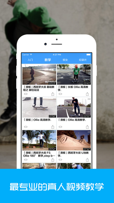 极限滑板,带你走进刺激的滑板世界! -专为新手朋友准备了入门教学视频,从装备零件到动作分解全方位演示。 -全世界的滑板达人的滑行短片及高难度动作教学,看着就很过瘾! -为你提供最新最快的全球滑板资讯活动更新。 -还有热爱滑板的板女们精彩的视频,谁说女子不如男! 爱刺激!爱滑板!