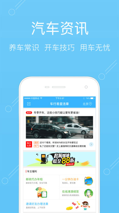 车行易官方出品汽车违章查询、油卡充值、车辆年审、驾照查分等车务服务专业级APP,六年老品牌,日均超千万车主用户使用免费查询服务。 车行易拥有业内优质的违章大数据,是百度、腾讯、支付宝、京东、高德、银联等互联网巨头官方指定服务提供商,权威认证! -----核心功能----- 【违章查询】直连交管扩至22个省,覆盖城市400+,官方权威准确稳定免费,地图直接定位违章地点 【违章代办】六年专业客服团队,专人办理,足不出户让您省心省力 【违章热点】亿级违章大数据展示违章热点地图,违章预警,拒绝二次违章,车主可互评吐槽 【车主社区】社区论坛话题精彩,车主互动沟通便捷,有问必答 【违章提醒】新违章免费主动第一时间通知提醒,支持全国范围 【油卡充值】加油88折,油卡在线充值,即时到账 【车辆年检】联合邮政上门服务,车辆年检在线一键搞定,有效年检期到期提醒 【云端绑定】手机注册同步云端,车辆数据、历史违章永不丢失 【港澳签注】车行易联合广东邮政速递物流提供港澳续签上门服务 -----我们承诺----- 隐私说明:绝不强制用户填写多余信息(后几位简单信息),同时绝不泄露您的车辆信息,请放心使用! 安全支付:银联、支付宝、微信等众多支付机构认证,确保代缴交易安全、稳定。 办理及时:专业客服办理,当天下单即办理,省心! ------关于我们------ 车行易是一家专业开展全国违章查询以及车务办理的服务提供商,官方、权威,值得信赖! 有任何问题及建议请通过我-联系客服反馈告知我们,我们会尽快解决,给您带来更好的应用体验。 客服热线:400-6022-688