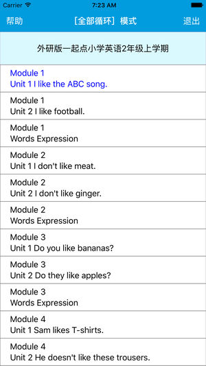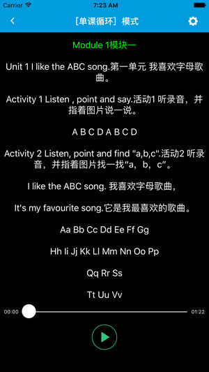 本应用对应外研版一起点小学英语2年级上学期课本,具有跟读模仿,自动听写,变速播放的复读机功能。 该应用支持跟读模仿,单次播放,单课循环,全部循环和听写的五种模式。它实现了实时评价用户跟读模仿的发音,并根据评价结果决定是否重新跟读。它以盲听跟读为设计原则,用户不需要反复触摸录音播放按钮,而是一键跟读,高效地练习口语。它还实现了单课循环,全部循环和智能分段功能。其中,智能分段可以让您免于寻找回放点,提高听音效率。在听写模式下,它提供了快速,常速和慢速三种模式供您选择。它贯彻了跟读模仿练习英语口语和通过听写练习英语听力的有效学习方法,让更多的学生摆脱哑巴英语,促进听力和口语相互提高,助力英语听力口语…