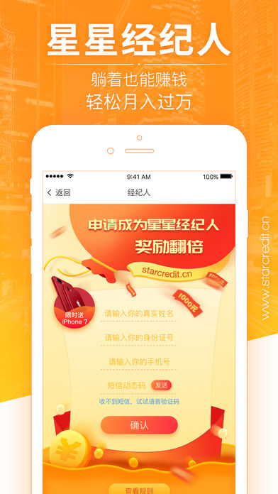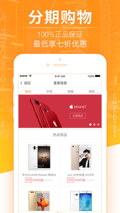 星星钱袋是维信金科推出的新型互联网金融产品,旨在为年轻用户提供消费信贷服务。用户通过下载“星星钱袋”APP,线上申请、自动审批、线上支付、自助还款,实现了5分钟审批,7×24小时全天候、自助式服务,旨在为用户提供更高效、更快捷的体验。 【信用贷款介绍】 1、额度1000 - 30000元,月费率低至0.65%; 2、拥有学历,征信空白也能贷; 3、老用户提现,急速到账; 3、提供公积金或社保信息,还有机会提升额度/降低费率; 4、还款可分期:3期、6期、9期、12期 。 【分期购物介绍】 星星分期商城主营3C产品,包括手机、电脑、单反等。 1、 价格优惠:售价看齐一线电商,欢迎各大电商比价。 2、 正品保证:京东货源,绝对品质保证。 3、分期购物:期限灵活3、6、9、12期可选。 【联系我们】 微信客服:星星钱袋 官方网址: www.starcredit.cn