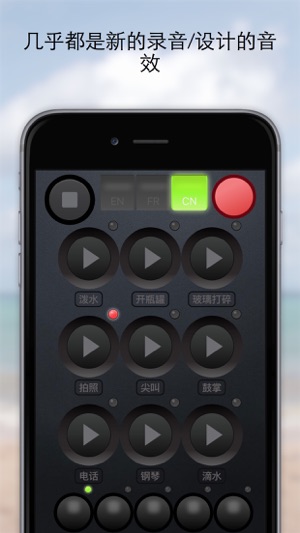 不是你一般会见到的音效软件,音效不是你听过一百遍的那些俗套。相反,这个软件的音效几乎都是专门录和设计的用在这个软件上。 * 可怕的怪兽咆哮的声音专门设计的一定要听哦! * 循环按钮。 * 五个不同的音效类别。 * 看上去很酷的用户界面。 * 将来会加上其他的音效 * 英文,法文和中文都支持。 * 停止按钮在左上角。