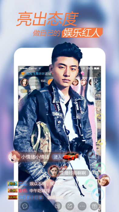 网红美女帅哥云集!app store 最红最火的网络娱乐交友平台!打开APP,让激情尽情的绽放,红人直播让你爱不释手,还不快来? 这里是爱生活、爱冒险、爱潮流、爱分享的年轻时尚群体聚集地;通过手机直播与好友分享生活点滴;与志趣相投的陌生人成为好友;从此你的每时每刻都可轻松与人分享。无论是型男、美女、颜值担当、奇葩、怪咖、逗比、蛇精病……在这里每个人都能找到属于你自己的美妙世界。 【一键直播】轻松一点,随时随地show出你的生活态度 【智能美颜】自动美颜,高颜值直播就是你 【实时直播】拒绝延迟,高清直播引爆无限可能 【互动畅聊】点赞、聊天、弹幕,享零距离交流体验 【探索精彩】玩乐不停,送礼游戏嗨到让你停不下来 官方微信公众号:红人live