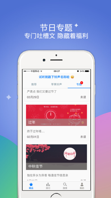 ● 2016年第一个冲到铃声排行榜第一的最好用的个性化来电设置苹果手机铃声APP。 ● 广告?怎么可能有广告!嘘!除了躺倒鸭,不加这个没工资! ● 安全无忧铃声一键免费下载,随心所欲,想换就换! ● 你只需要看,听,选铃声,你只需要做选择,其他不用管;我们不提供铃声剪辑制作功能,所有的苹果手机铃声都是现成的,你根本不需要研究那些浪费你时间的技能,你只需舒舒 服服的选择 ● 独特的语音搜铃功能,普通话或者英语都没有问题,让搜索更简单! ● 文字搜索支持中文简体,中文正体(繁体),英文,日文和韩文!其他法文,德文和意大利文就不要难为我了,小女子根本不认识! ●【安全】【绿色】【无广告】用起来最舒心的铃声设置助手! ● 苹果手机必备铃声软件,铃声设置便捷,好评最多的铃声软件! ● 涵盖300万高品质热铃,资源每日更新1000+,当红歌曲、搞笑铃声、纯音乐铃声,只有你想不到的,没有我们没有的。全国全网最多,真正的铃声多多,铃声大全! 【专注提供高音质好铃声】 【智能推荐】24小时高品质铃声推荐,你用得越频繁,我推荐的越准! 【资源最全】涵盖300万首高品质铃声,全网资源最全的苹果手机铃声大全! 【铃声最新】最新最火歌曲铃声,每日更新1000+,好听铃声多多! 【独家特色】独家合作曲目及铃声制作人,打造高雅品味铃声 ,天天动听! 【热门流行】热播电视剧插曲的铃声、热门流行单曲的铃声、最搞怪的耍宝铃声全都有!