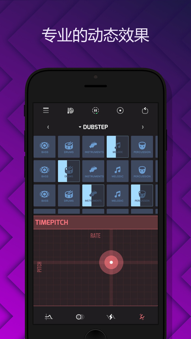MixWave是一个虚拟鼓机和效果处理器,用于创建音乐。 随时随地创建音乐! 你可以轻松地创作强有力的节拍。 高品质的原始样品是被专业的音乐家记录的。 制作和混合音乐 创建你自己的曲目,结合最好的电子音乐的声音和循环。 专业的动态效果 为你的曲目应用实时效果--Filter, Timepitch, Delay, Flanger。 先进的声音包 由专业音乐家制作的最流行的电子音乐类型的声音包。 自动播放模式 使用此模式激活随机垫,并为你的曲目获得新的声音创意。 记录与分享 组成一个完整的电子曲目,记录下来,并在社交网络中分享。
