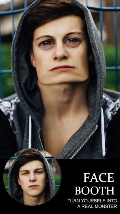 大嘴巴,大眼睛,外星人,哈哈镜,方砖脸,快来免费下载变脸大师吧! 扭曲你的面部和声音,添加超酷炫的特效,制作令人捧腹的视频和照片! ”变脸相机“一个脸部变形工具的合集。 它可以自动识别变形人脸,并为你自动加上各种卖萌、搞怪的贴纸。你可以用他直接拍出带有贴纸效果的照片和视频。 你可以用”变脸相机“添加疯狂的面部特效和滑稽的声音特效,来制作搞笑视频和照片。例如你可以把自己的眼睛或额头变得无比巨大,同时把自己的声音变得像吸了氦气的花栗鼠。 欢迎试用”疯狂变脸“,看看你到底能把自己的样子和声音变得多搞笑! 特性: * 实时人脸识别,实时录制变形视频 * 30种疯狂面部特效 - 有趣的液化效果,哈哈镜变老变胖子 * 声音特效 - 改变你的声音,突破你的想象力 * 提供50种不同的贴纸供使用,各种卖萌、搞怪 * 20中滤镜效果,寻找术语自己的风格 * 强大的专业图片编辑功能,添加文字和各种贴画 * 通过微信、qq、微博、Twitter、Instagram和Facebook与好友分享你的杰作。 注意:你也可以通过向好友推荐”变脸相机“来解锁特效!有意者请留意“特惠”图标。 录制视频自拍动画,使用不同的面具后通过你最爱的messengers或者其他的社交软件发送给你的朋友们。