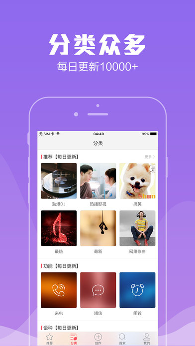 彩铃大全,装机必备。 300万首无损高音质铃声资源,iphone用户设置铃声必备软件 【铃声设置】最智能的铃声设置软件,解决iphone用户铃声设置问题 【免费下载】300万首无损音质铃声,涵盖全网资源,你要的苹果手机铃声都在这 【分类众多】囊括影视、DJ、搞笑、动漫、流行等众多分类,铃声、彩铃、短信闹铃统统搞定 【更新迅速】实时抓取最火最热铃声资源,每日更新1000+ 【剪辑功能】配有剪辑功能,自己剪歌当铃声,更个性 彩铃大全,专注提供高音质好铃声,完美适配ios9