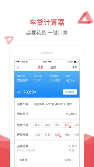 易鑫车贷是腾讯、京东、百度、易车共同投资约100亿元人民币的易鑫集团旗下的中国领先互联网汽车金融平台,为您提供全面的线上汽车金融产品和服务。主要包括新车贷款、二手车贷款、汽车租赁、汽车保险等产品服务,帮您轻松解决购车资金问题! 【核心功能】 1、开走吧:开新车首付1成起,在线审批速度快,省心又省钱; 2、新车贷款:挑选好车快速报价,贴息优惠限时抢购,帮您贷款私人订制省时省力,顾问陪同全程免费; 3、二手车贷款:海量品牌车源优质保障任您挑选,信息公开省时更省心; 4、汽车保险:行业八大品牌,快速获得优惠车险报价,全网首发“真比价”,只买对的,不买贵的; 5、易问答:专业的车贷服务顾问,帮您解决…