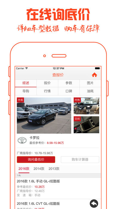 汽车报价2018,全国新车二手车优惠信息第一时间掌握,全程4S店销售提供底价信息。 我们为您提供: • 各大品牌车系最新报价询底价 • 获取各大汽车厂商第一手新闻 • 智能选车,为您个性化推荐爱车 • 购车指南,实时更新,买车必备 • 免费试驾,手机预约到店试驾 如果您对本应用有任何建议或意见欢迎通过应用内的“意见反馈”通道与我们沟通。