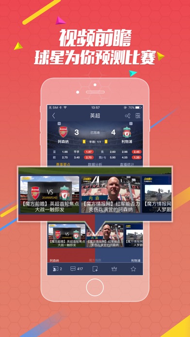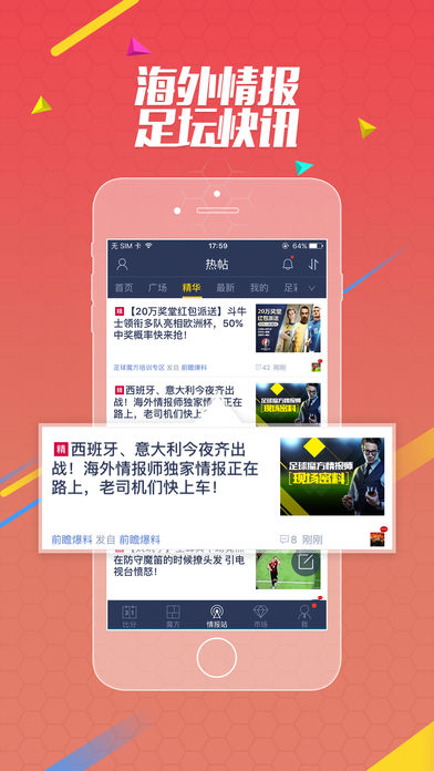 加送7%彩金,上不封顶,安全购彩,极速提款。 国际足联官方认证[天生赢家]马特乌斯,带来免费竞彩方案推荐,一键跟单,盆满钵满。 足球魔方-澳超多家俱乐部官方媒体合作伙伴,独家赛前爆料,更有机会带你VIP包厢看球 送乐视体育会员-中超、英超、亚冠、全球足球赛事全程无广告直播 想实时掌握足球比分-全球赛事足球比分、足球比赛事件与实时数据统计,五大联赛全程陪你一起看! 想了解一手足球情报-全球强大的足球娱乐社区,覆盖国内外情报师,足球新闻快讯、即时赛事情报、各类预测样样齐全。 想展现你的足球推荐才能-足彩培训,十万名足球博彩达人,英超、西甲、德甲想推就推。 想和足球爱好者沟通-各类情报站随你选,晒红单、谈复盘、比成绩、说经验。更有专业分析师团队带领,开启培训,旨在提高足球爱好者的推荐分析能力,规避风险,最大限度提高足球比赛赛前预测的稳定性和准确性。