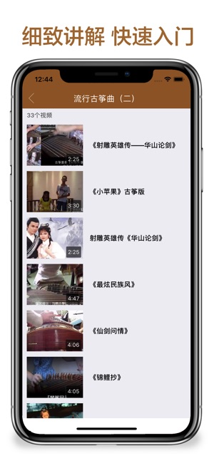 【汇集全网精品古筝教学视频】 【古筝爱好者必备App,入门到提高】 汇集海量古筝教学视频 各类名师名家教学指导,袁莎,李萌,林玲,伍洋等名师大家; 详细讲解古筝考级各个曲目,逢考必过; 介绍各类古筝技巧,滑音,遥指等技巧; 结合现代流行歌曲的古筝弹法; 个人古筝独奏欣赏。