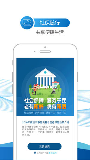 【应用简介】 济宁人社通是一款便民服务应用,能方便参保人随时随地了解社保最新信息、个人缴费信息、定点医院,以社保办事、健康管理、个人信息查询和社保缴费业务为主要功能的APP。 【服务内容】 1) 人社新闻:人社类新闻 2)政策法规:社保相关政策法规 3)就业信息:查看当地招聘信息 4)社保缴费查询:济宁市民查询本人社保缴费记录 5)社保缴费:在线完成居民和灵活就业在线缴费功能 6)社保待遇查询:济宁市民查询本人社保待遇记录 7)定点医院:查询当地定点医院信息 8)在线咨询:查看/咨询当地社保相关问题 9)人员基本信息:绑定社保卡,获取姓名、性别、年龄、社保卡号等个人基本信息